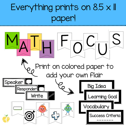 Printable Math Focus Wall Bulletin Board Sets for Grades K-6. Aligned with...