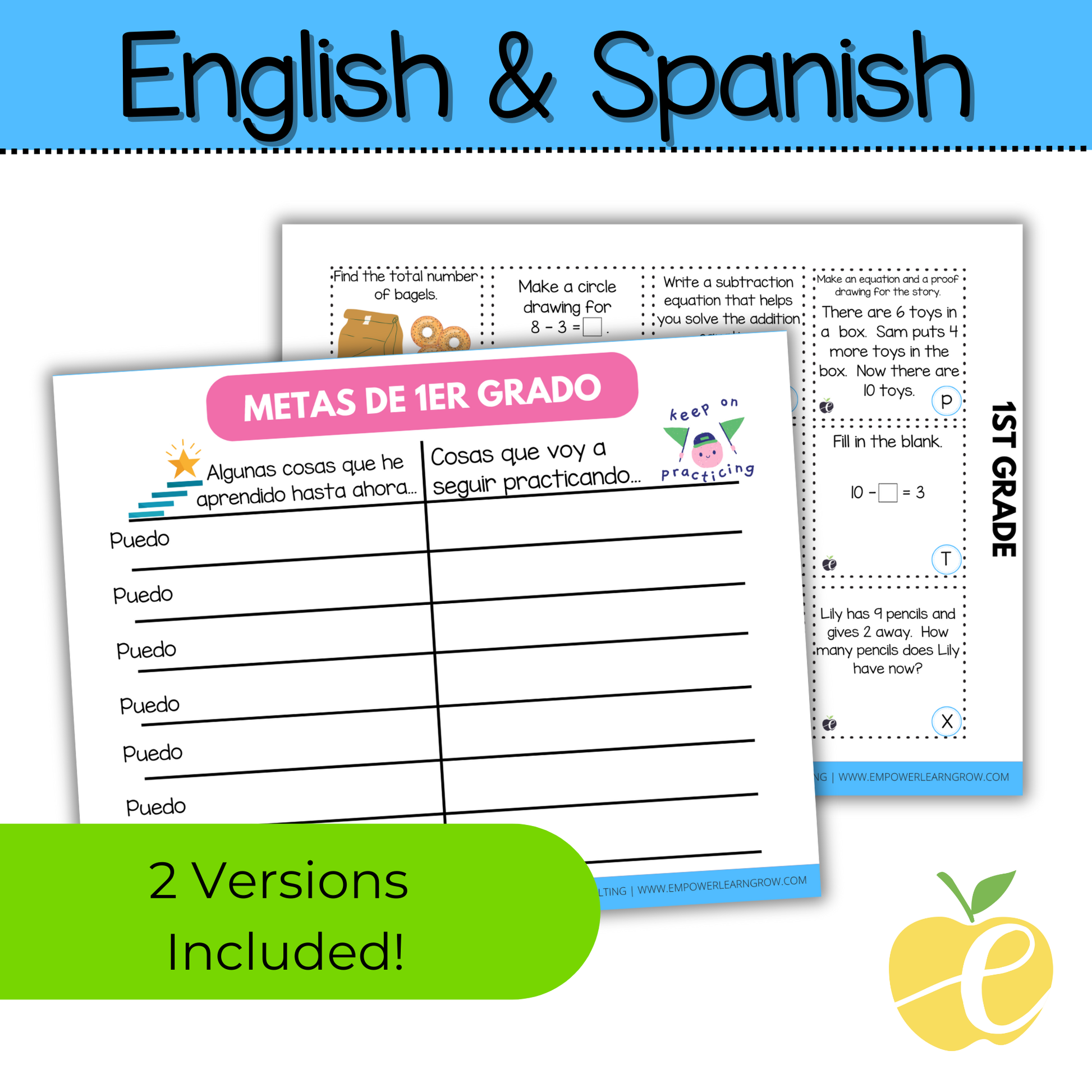 Both English and Spanish game boards and cards are included for flexible classroom use.