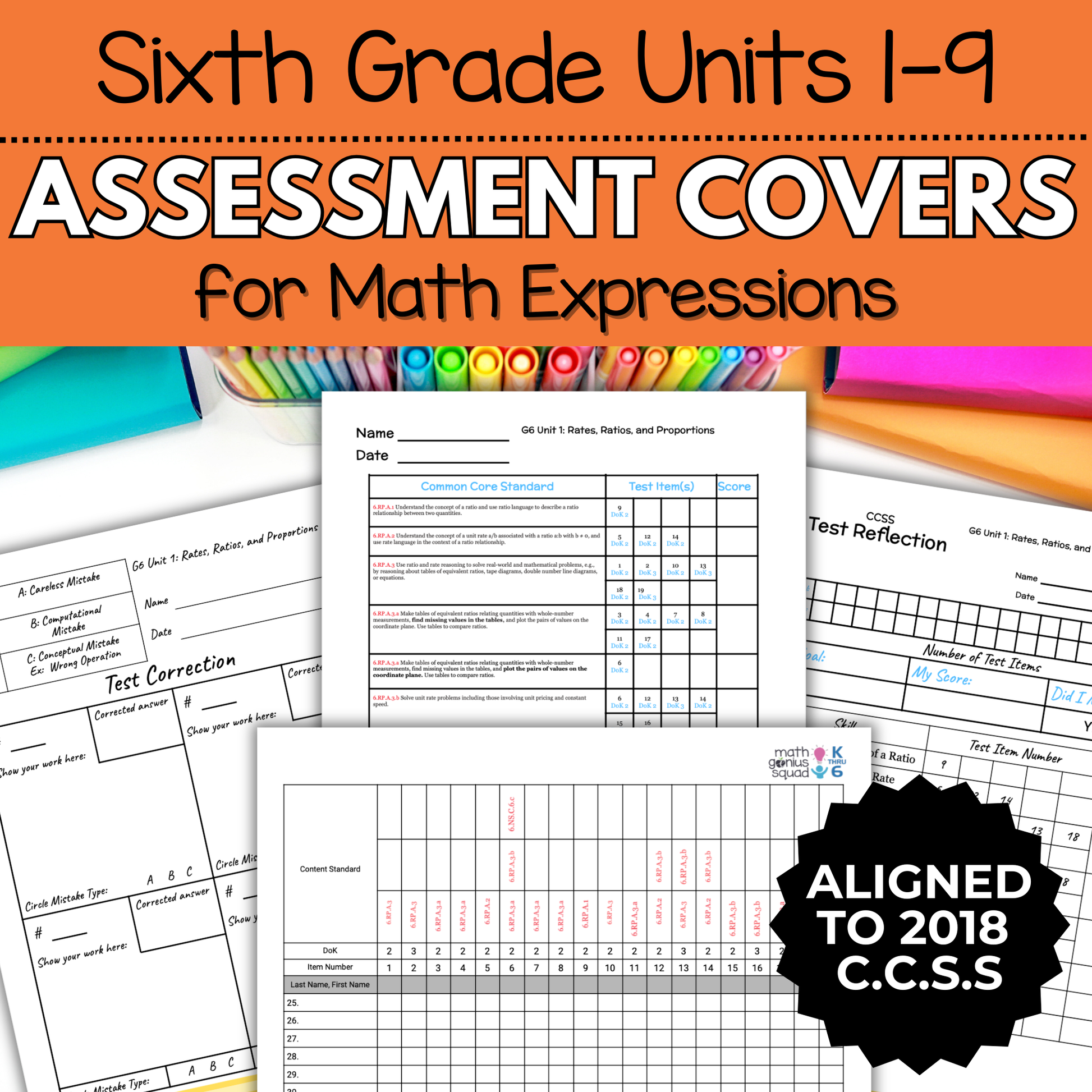 6th Grade Assessment Cover Forms & Data Trackers for Math Expressions Units 1-9